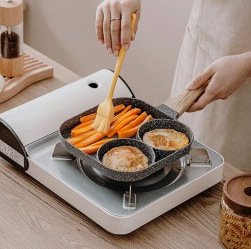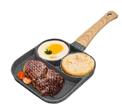 Con sus 3 compartimentos, puedes preparar huevos, carne, verduras y más en una sola sartén. ¡Ahorra tiempo y disfruta de comidas deliciosas sin ensuciar varias ollas y sartenes!